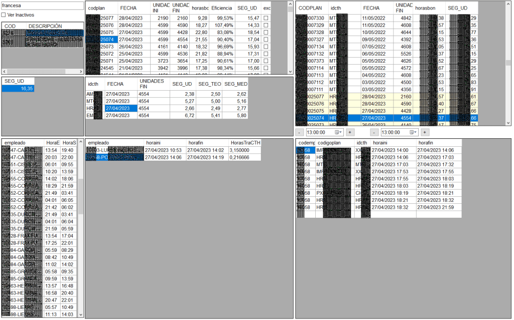 Los paneles gráficos y las pantallas que desarrollamos muestran todas las Operaciones, Bonos de Trabajo y Materias Primas.